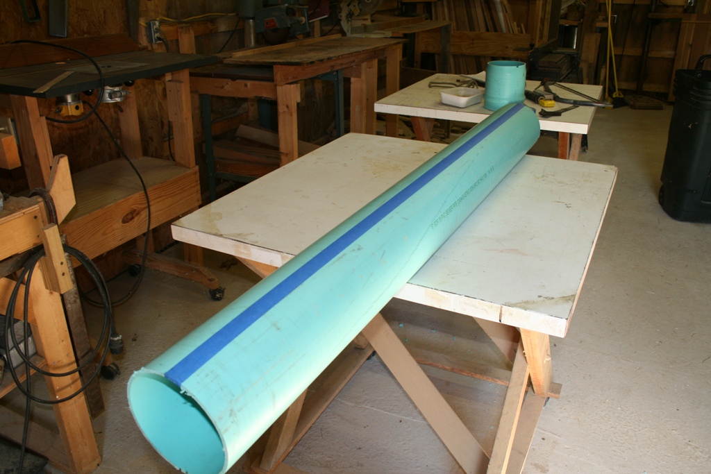 Now that I have a straight line on the tube, I simply used my jigsaw and cut along the right edge of the tape, thus cutting the tube along its length.
