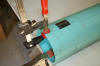 Next, you'll need a straight line form one end of the tube to the other that lines up with the lines on the end of the tube. To make this line, I used painter's tape. I stuck it on one end, (right edge of the tape on the mark) folding a little under the pipe so it stayed 'stuck'. Then I unrolled it out, pulled it snug and simply laid it on the tube with the right edge of the tape on the corresponding mark at the opposite end of the tube. Then I stuck it down good so it wouldn't move.
